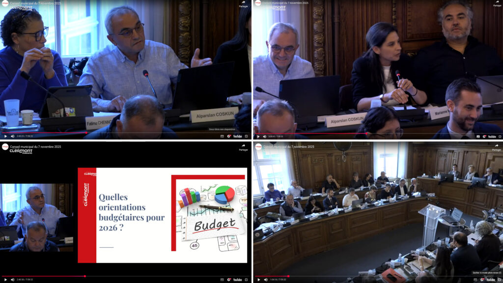 Le bilan d’une année de combat contre la régression sociale, écologique et démocratique n’est pas un exercice facile de le résumer dans un petit article de La Montagne :Nous, Marianne Maximi, Diego Landivar, Fatima Chennouf-Terrasse et Alparslan Coskun, étions présents dans 89 heures de débat lors des 8 séances du Conseil municipal de Clermont-Ferrand et des 10 séances de Clermont Auvergne Métropole (soit une moyenne d’une durée de séance de 5h), sans compter bien entendu les délibérations de nombreux rapports à étudier et à analyser (environ 100 par séance du conseil métropolitain et 50 par séance de la Ville soit un total de 1 400 délibérations) ainsi que la participation à 76 heures de commissions (chaque élu participant à au moins une commission municipale, tandis que les élu·e·s métropolitains sont présents dans 2 commissions, par ailleurs, les représentants de la France insoumise sont mandatés pour participer à des délégations telles que SIVOM, La Comédie de Clermont-Ferrand scène nationale, écoles,… ) sans oublier les 36 heures de préparation collective…